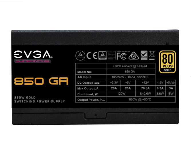 Nguồn EVGA SuperNova 850W GA (80 Plus Gold, Full Modular)